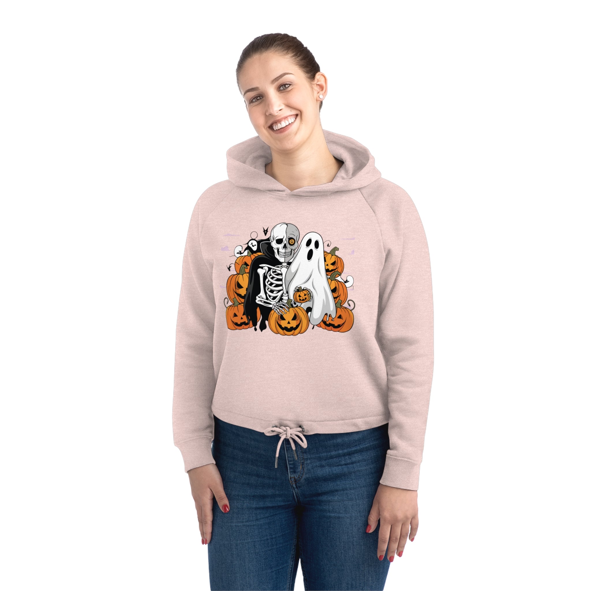 Scary Skeletons and Pumpkins Halloween | Women's Bower Cropped Hoodie Sweatshirt - Black / XS