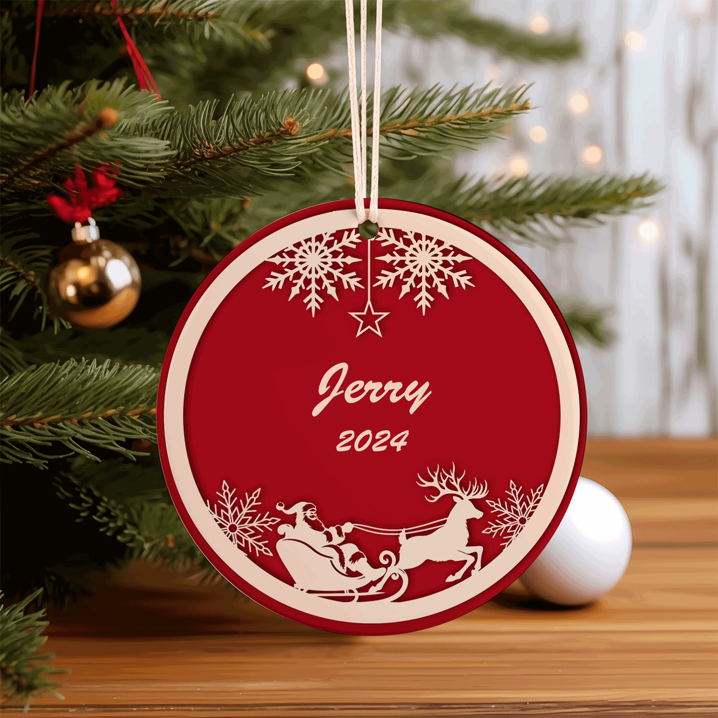 Santa Sleigh and Reindeer | Classic Christmas Decor in Red and White | Ceramic Ornament