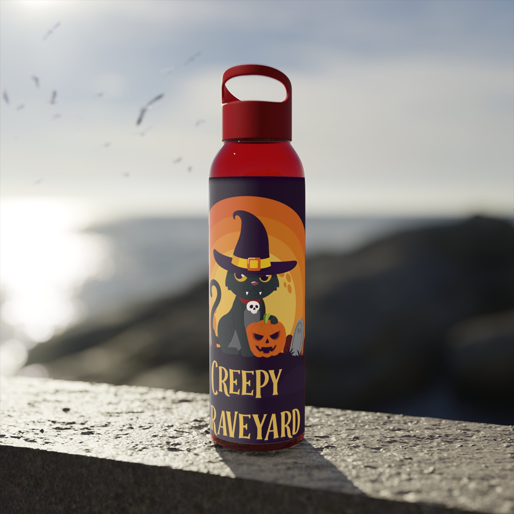 Creepy Graveyard | Halloween Black Cat with Ghosts and Pumpkin | Sky Water Bottle