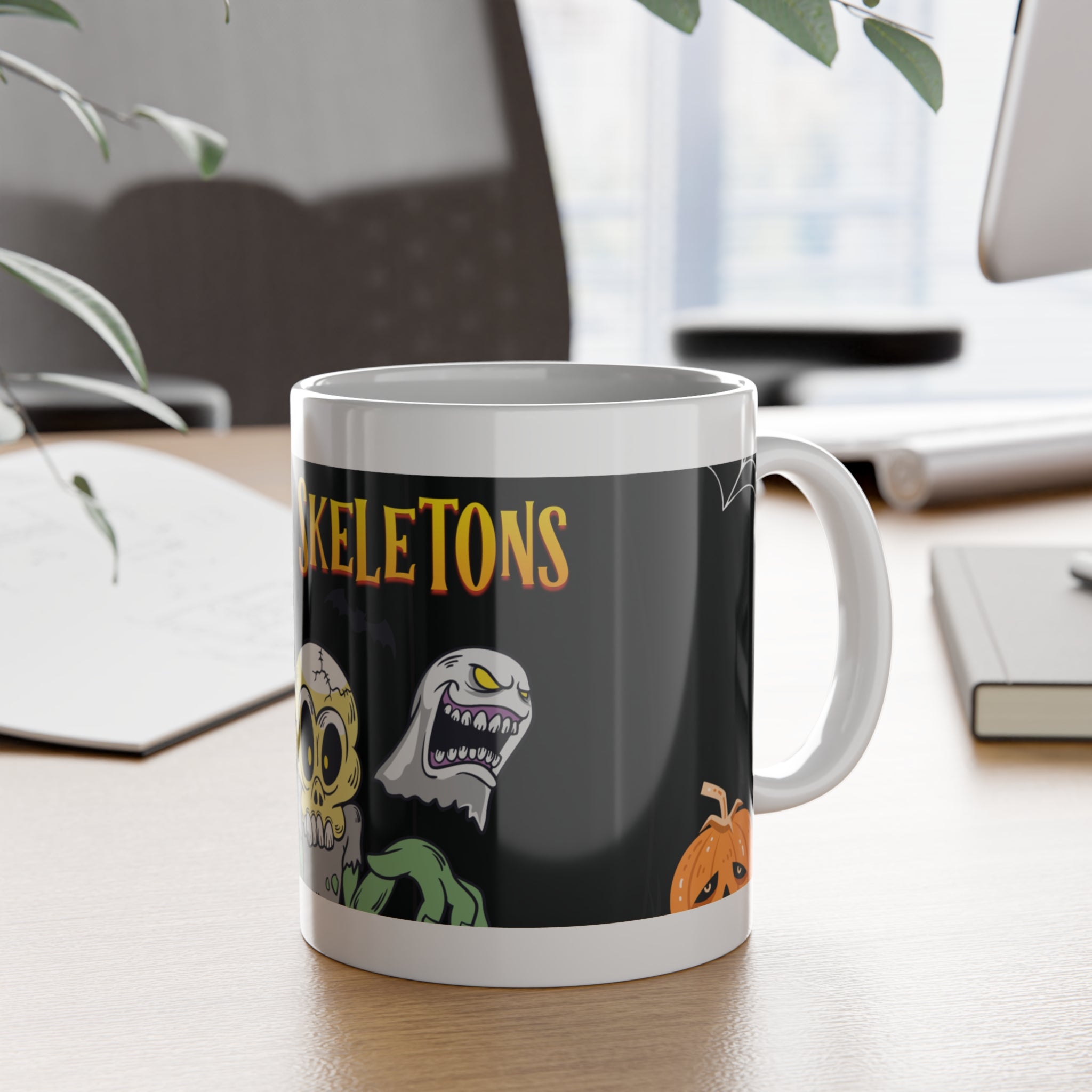 Creepy Skeletons and Ghosts | Spooky Halloween with Pumpkins | White Ceramic Mug - 11oz / White